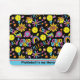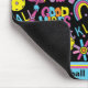 With text mouse pad, Groovy, retro 90s style pickleball pattern with yellow pickleballs and black background.