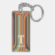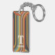 Add a retro touch to your daily routine! Personalise this custom keychain with your name and monogram. Featuring a stylish abstract line design in warm shades of gold, orange, teal, and brown.