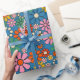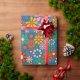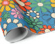Groovy Retro Colourful 60s 70s Floral Pattern Wrapping Paper. Vivid, colourful, pretty seamless repeating pattern with a vintage aesthetic and a hippie vibe, in vibrant blue, orange, mustard, green, and pink tones. By Kierkegaard Design Studio.