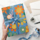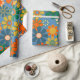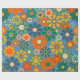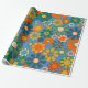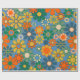 Groovy Retro Colourful 60s 70s Floral Pattern Wrapping Paper. Vivid, colourful, pretty seamless repeating pattern with a vintage aesthetic and a hippie vibe, in vibrant blue, orange, mustard, and green tones. By Kierkegaard Design Studio.