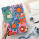 Groovy Retro Colourful 60s 70s Floral Pattern Wrapping Paper. Vivid, colourful, pretty seamless repeating pattern with a vintage aesthetic and a hippie vibe, in vibrant pink, blue, orange, mustard, and green tones. By Kierkegaard Design Studio.