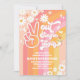 Celebrate your childs milestone with this vibrant retro 1970s-inspired birthday invitation featuring pastel rainbow stripes, playful daisies, butterflies, peace signs, and a bold peace hand gesture. Perfect for a groovy girls tenth birthday, this colourful design captures the spirit of peace, love, and fun while making party details stand out. A trendy boho vibe ensures your invitation is both stylish and memorable, setting the tone for a joyful celebration.
