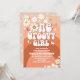 Celebrate in style with this retro groovy birthday invitation featuring vibrant orange and red rainbow arcs, playful daisies, butterflies, stars, and peace-inspired accents. Perfect for a 70s-themed party, this unique design sets the tone for a fun and nostalgic celebration. Customise with your event details to create a standout invitation that guests will love. Ideal for first birthdays, kids parties, or any peace, love, and fun occasion.