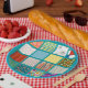 Groovy retro design done in a quilt like pattern. paper plate
