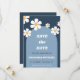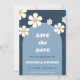 Groovy Retro Dusty Blue Boho Arch & Daisy Pattern Save The Date