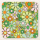 Groovy Retro Garden 60s 70s Spring Floral Pattern Square Paper Coaster