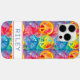 Make a retro statement with this groovy 70s inspired hippie peace sign iphone 16 pro max phone case! It's modern and trendy with bright colorful watercolor peace signs. Make it uniquely yours with your name in a modern cap font in a coordinating blue. It will look fabulous on your phone!
