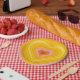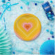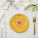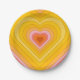 Retro heart burst design. Heart layers in orange, yellow, pink. Groovy retro heart gifts, home decor.