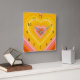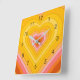 Retro heart burst design. Heart layers in orange, yellow, pink. Groovy retro heart gifts, home decor.