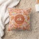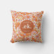 Groovy Retro Orange Florals Monogram Cushion