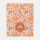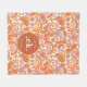 Groovy Retro Orange Florals Monogram Fleece Blanket