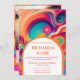 Groovy Retro Orange pink abstract funky wedding Invitation