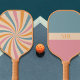 Groovy Retro Pattern Pink Blue Aesthetic Monogram Pickleball Paddle