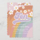 Groovy Retro Rainbow 10th birthday invite with daisies.