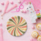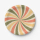 Paper Plate with swirling radial pattern. Vintage curved rays. Groovy retro swirl burst. Helix rotation rays
