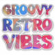 Add a splash of retro charm to your world with this groovy cut-out sticker. The words 'Groovy retro vibes' are in multicolor lettering in a 70s-inspired style. The eye-catching design invites positive energy wherever you place it, while the playful typography pops with vibrant colours, making it a perfect addition to your laptop, water bottle, notebook, or phone case. A fun gift for vintage lovers, hippie souls, and anyone who adores colourful, nostalgic style.