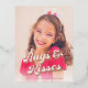 A retro style photo card design featuring rose gold typography that says "Hugs & Kisses" and a personalised Valentine's Day greeting with signature.