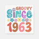 Birthday gift idea or birthday party supplies for cool hippies celebrating a milestone age, with lots of colourful psychedelic flowers and peace signs.