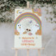 Groovy retro themed Halloween welcome sign with a rainbow, spooky ghosts, pumpkins, and lots of flowers. Perfect for a 70's hippie themed party!