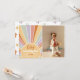 Boho birthday party invites with a custom photo of your choice! Retro-inspired birthday party invitations featuring a hippie-style sun, colourful daisies, and groovy fonts. The front of this card features a hand-drawn sun with rays of sunshine in different pastel rainbow colours. The colours are soft tones, so the overall appearance of the card keeps a bright, simple minimalist feel even though it is colourful and fun! Inside the centre of the sun, the birthday girl's name is written in a chic handwriting script. Her age appears underneath in bold groovy typography. On the right-hand side of the card, a photo of the birthday girl is framed by a white, hand-drawn border. Cards reverse to a cute pattern of colourful daisy flowers. Perfect for any age girl. For boho events, retro 60s or 70s themes, hippie styles, spring birthdays, pool parties, summer fun, sun-themed celebrations, and more! This invitation template is editable online, simply click on "Personalise this template" to get started. For more advanced edits, select "click to customise further" to access Zazzle's Design Tool. Please note the cards are printed as you see them on your screen when ordering, so be sure to double-check for typos! Other versions of this design are available in the collection linked on this page. Browse my store for more sunshine birthday party invitations.