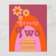 Groovy two, celebrate her 2nd birthday with this cool retro 1970s vintage colours burgundy, orange, pink and mustard yellow rainbow arch second birthday party budget invitation. With simple daisy design and easy to use templates this custom invite sets the seen for a cool groovy hippie girls party. Original artwork by artist Catherine Sweetman