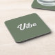 Bring a cool, retro touch to your home with this set of groovy 'Vibe' coasters. Set against a stylish olive green background, the font adds a flourish to your coffee table, bar or office. These coasters are perfect for accenting your living space while protecting surfaces from drink marks. Whether you're enjoying coffee or cocktails, these coasters ensure a proper chill out. An ideal gift for fans of groovy yet minimalist home decor.