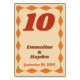 A unique wavy border frames this groovy wedding Table Number sign. Burnt orange, reds, and browns. Bold retro typography for a retro seventies feel and high visibility for effective signage guiding your guests to their table. Customise with your table numbers, names, and wedding date. The double-sided sign is identical on the back and front.