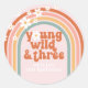 Groovy Young Wild Three daisy rainbow 3rd birthday Classic Round Sticker