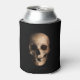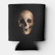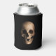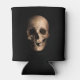 Grinning, grotesque skull. Zipper splits the skulls head right open! Large creepy skull on the front and back with black background. Black background.Halloween themed can cooler.