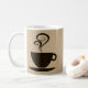 Steaming cup of coffee on a burlap background for your warm beverage.
