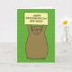 A large cartoon groundhog stands holding above his head a lemon coloured sign that says 'Happy Groundhog Day Birthday'. The image has a patterned green background.