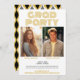 Fun Retro Font in gold and black --- If you are having a group graduation party this year -- or triplets, this announcement and invitation has 2 photos and room for 2 or more names. The back of the invitation has party information. Add any year to show this elegant and trendy design. This can be used for any graduate - high school, college, grad school, med school or even trade school.