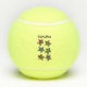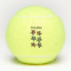 These tennis balls have a group of six black abstract turtles with colourful shells in blue, red, green, yellow, orange, and purple on the front and back. Customise your name on the front and back with the template.