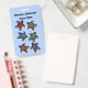 This name or identification badge is light blue with a group of six fantasy turtles that are black with colourful markings on their shells in blue, red, yellow, green, orange, and purple. Customise your name and information with the templates.