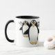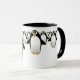 Group of Penguins on a coffee mug - black interior, with a black handle.