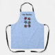 This kitchen apron has a group of six abstract black turtles with markings in various colours on their shells in blue, green, red, yellow, orange, and purple on a light blue background. Customise your text with the template.