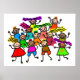 Cute cartoon whimsical illustration of a group of happy and diverse little boys and girls waving and smiling. Easily customise and choose your own background colour or add text. Image available on various gifts and products.