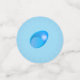 This table confetti has large circles with a group of Easter bunnies in pastel coloured clothing running in the grass carrying baskets with yellow chicks and coloured eggs. Customise the Happy Easter text with the template. Medium circles are pink with a bright pink Easter egg, small circles are blue with a blue Easter egg.
