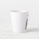 This Latte mug has a group of running Easter rabbits in pastel coloured clothing running in the grass carrying colourful Easter Eggs and baskets framed in a wavy purple border. Cusomize your text at the top with the template.