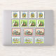 This vinyl sticker sheet has a group of various Easter stickers including yellow baby chicks hatched egg with Easter Greetings text; white Easter bunny pushing wheelbarrow with coloured eggs with Joyous Easter text; two rabbits driving antique car with blue egg with Easter Greetings text; and group of running bunnies in grass carrying baskets with eggs with Happy Easter Text which is you can customise with the templates.