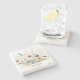 The coasters are gorgeous, a quality feel and heavy weight. They look like a precious archeological find. A rustic stone juxtaposed with a modern floral black and white print. I like the way the print goes slightly imperfect on the cut stone edges giving them a kind-of natural beauty.