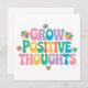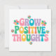 Nurture a brighter mindset with this uplifting "Grow Positive Thoughts" greeting card featuring whimsical, colourful flowers and motivational lettering. This cheerful artwork encourages mindfulness, self-love, and personal growth, making it a perfect gift or personal reminder to stay positive and spread good vibes. This floral-inspired design brings beauty and encouragement to everyday life.