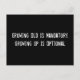 Growing Old Is Mandatory. Growing Up Is Optional Postcard