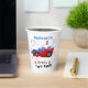 Growing Up Two Fast 2nd Birthday Kids Racing Cars Toddler Party Paper Cups features a cute and colourful racing cars with the text "Growing Up Two Fast" in modern typography script accented with the number 2 and doodles. Personalise with your custom name. Perfect for kids second birthday celebrations. Designed by Evco Studio. For coordinating items view www.zazzle.com/store/evcostudio
