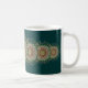 Coffee Mug decorated with the "Growth" design. Design is surrounded with a blue-green background and trimmed with a dark green border.