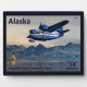 A postage stamp of a fictitious independent Alaska depicting aGrumman G-21 Goose amphibious aeroplane in service with the Alaska State Troopers over water with mountains in the background. Text reading, Alaska", "POSTAGE 20 NUGGETS" and "Alaska State Troopers Grumman G-21 Goose" also appear.