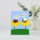 On this cute postcard an annoyed bumble bee sits on a yellow flower and asks, "Why are you bugging me, lady?" to which the smitten ladybug sitting on another flower responds, "Bee-cause you're cute". From my original digitally-created image.