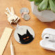 This is a minimalist coaster design with a flat illustration of a black grumpy cat. You can customise the text!