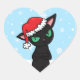 Grumpy Black Cat wearing Santa Hat Heart Sticker