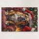 This charming, vintage-style illustration features a perfectly stoic Bulldog wearing a festive Santa hat, sitting regally on a velvet chair in a cozy, old-fashioned Christmas setting. A wonderful, unique holiday design for Bulldog lovers.